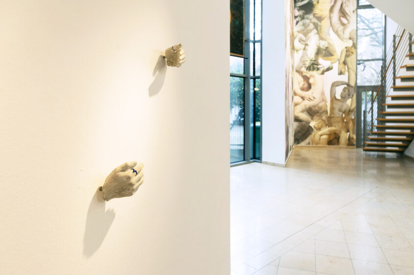 Beide verbindet der Ansatz, zeitgenössische Fragen mit der eigenen Biografie zu verknüpfen. Und beide schöpfen dabei aus der formalen Quelle der Kunstgeschichte. Während Justus aus der kritischen Auseinandersetzung mit der antiken Skulptur und ihrer fragmentierten Überlieferung im Sampling neue Bilder entstehen lässt, baut Chwatal seine Werkzyklen aus stilistischen Anklängen verschiedener Epochen auf und deutet sie neu.